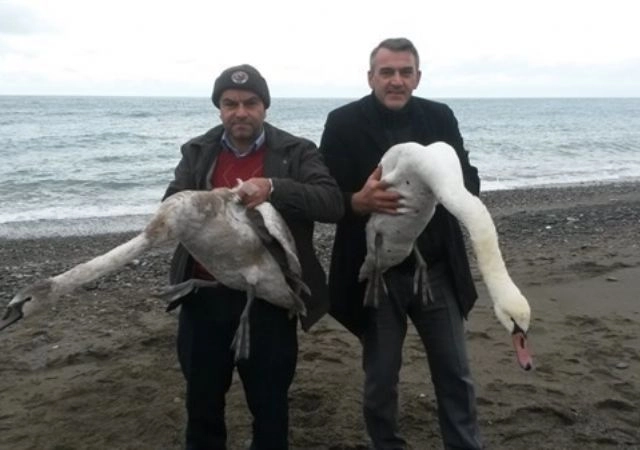 Kastamonu Orman Bölge Müdürlüğü ekiplerince, biri yaralı iki kuğu tedavi altına alındı.
