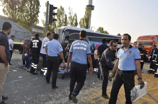 Ankara'da şehirler arası yolcu otobüsü tıra çarptı. Gölbaşı'nda meydana gelen feci kazada 3 kişi hayatını kaybetti, 26 kişi de yaralandı.Kaza, sabah saatlerinde Gölbaşı'nda meydana geldi. Edinilen bilgilere göre, Mardin-Ankara seferini gerçekleştiren Bilal Yeşilmen hakimiyetindeki 73 DZ 935 plakalı şehirlerarası yolcu otobüsü, Ankara-Konya karayolunun Vilayetler Evi kavşağında, sürücüsünün direksiyon hakimiyetini kaybetmesi sonucu aynı istikamette ilerleyen Metin Kantik idaresindeki 73 FE 33 plakalı mısır yüklü tıra arkadan çarptı. Ön kısmı hurdaya dönen otobüsün şoförü Bilal Yeşilmen, muavini Veysel Yeşilmen ve yolculardan Mehmet Şirin İnci hayatını kaybetti. Yolculardan da 26'sı yaralandı.Kazanın ardından bölgeye çok sayıda polis, itfaiye ve sağlık ekibi sevk edildi. İtfaiye erleri sıkışan yaralıları kurtarmak için çalışma başlattı. Aralarında yaşlı ve çocukların da bulunduğu yaralılar ambulanslarla tedavi edilmek üzere Ankara'nın çeşitli hastanelerine götürüldü. İtfaiye ekiplerinin bir saatlik çalışmasının ardından cenazeler sıkıştıkları yerden çıkarıldı. Kazayı haber alarak gelen Gölbaşı Kaymakamı Tülay Baydar Bigihan yetkililerden bilgi aldı.Cenazeler Gölbaşı Belediyesine ait cenaze aracına alınarak morga kaldırıldı. Kazanın ardından yolun 3 şeridi trafiğe kapandı. Polis ekipleri, başka kazaların yaşanmasına engel olmak için trafik önlemleri aldı. Yoldan geçen meraklı sürücülerin kaza yerinde yavaşlaması nedeniyle yolun Ankara istikametinde uzun araç kuyrukları oluştu.