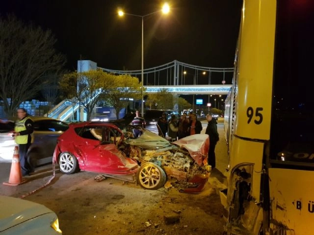 Bursa'da yarış yapan iki spor araç, belediye otobüsüne ve başka bir otobüse çarptı. Edinilen bilgiye göre kaza, Bursa'nın Nilüfer ilçesi İzmir Yolu üzerinde meydana geldi. Akşam saatlerinde aşırı hızlı bir şekilde kendi aralarında yarış yapan iki spor araç tehlikeli bir şekilde İzmir istikametine gidiyordu. Duraktan hareket eden otobüsü göremeyen 16 NFR 89 plakalı araç, halk otobüsüne arkadan çarptı. Onu takip eden arkadaşı 16 NSZ 26 plakalı araç ise arkadaşının karıştığı kazadan kaçmak isterken önünde giden araca çarptı. Kaza sonrası halk otobüsünde bulunan yolcular yara almadan kurtulurken iki spor aracın sürücüsü de yaralandı. Çevredeki vatandaşlar tarafından aranan 112 Acil Sağlık ekipleri olay yerine gelerek yaralı sürücüleri ambulanslarla Uludağ Üniversitesi Tıp Fakültesi Hastanesine götürdü. Kaza sonucu İzmir Yolu bir süre trafiğe tek şerit üzerinden devam ederken polis ekiplerinin çalışmalarının sonucu yol tekrar trafiğe açıldı. Çevredeki vatandaşlar her gece İzmir Yolu üzerinde yarış yapıldığını ifade etti. Polis kazayla ilgili soruşturma başlattı.(Yusuf Ali Arslan - Uğur Uslubaş /İHA)