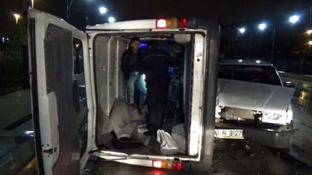Bursa'da yeni aldığı aracıyla kaza yapan sürücünün oğlu, araçta para aradı. Bursa'nın Nilüfer ilçesine bağlı Odunluk Mahallesi Odunluk Köprüsü üzerinde Keles ilçesinden aldığı 16 FK 198 plakalı kamyonetiyle kaza yapan Dursun Saka(49) yaralı olarak yerde yatarken karşı şeritten gelen Rahmi Sadık(38) idaresinde ki 41 R 9127 plakalı araç duramayarak, yan yatan kamyonete çarptı. Çarpmanın etkisiyle araçta bulunan Rahmi Sadık'ın eşi Suzan Sadık(28) ve çocukları Aslı Sadık(10) ile Ramazan Sadık(8) yaralandı. Olay yerine gelen bir ambulansla yaralı Dursun Saka Çekirge Devlet Hastanesine kaldırılırken hafif yaralı olan Sadık ailesi yağan yağmurdan sığınmak için polis ekiplerinin otosuna alındı. Daha sonra olay yerine gelen başka bir ambulansla da hastaneye kaldırıldılar. Kaza sonrası yan yatan kamyonetin sürücüsünün oğlu Mustafa Saka olay yerine gelerek babasının kamyoneti aldıktan sonra artan parayı koyduğu kırmızı çantayı aradı. Aramalarının sonucunda çantaya ulaşan Mustafa Saka polis ekiplerinin tutanak tutmasının ardından çantada bulunan 8 bin 500 Türk Lirasını aldı.Yaralıların hayati tehlikesi olmadığı öğrenilirken polis kaza ile ilgili soruşturma başlattı.(Yusuf Ali Arslan / İHA)