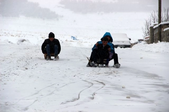 Kar yağışının etkisi altına giren Doğu Anadolu Bölgesinde çok sayıda köy ve mahalle yolu ulaşıma kapanırken karın tadını her zamanki gibi çocuklar çıkardı. Doğu Anadolu kar yağışına teslim oldu. Bölgede kar ve tipi dolayısıyla bine yakın köy ve mahalle yolu ulaşıma kapandı. Erzurum, Bingöl, Kars, Ağrı, Ardahan ve Erzincan'da, karayolları, il özel idaresi ve belediye ekipleri yoğun çalışmalar ile kapanan yolları yeniden ulaşıma açmaya çalışırken kar yağışı da aralıklı olarak devam ediyor.Kar kalınlığının 20 santimetreye ulaştığı Erzurum kent merkezinde Büyükşehir ve merkez ilçe belediyelerinin karla mücadele ekipleri çalışmalarına başladı. Bazı işyeri sahipleri de sabahın erken saatlerinde dükkanlarının önünü temizledi. Çocuklar da sabahın erken saatlerinde karlı kaplı cadde ve sokaklarda yürüyerek okullarına gitmeye çalıştı. İşyerlerine özel araçları ile gidenler ise ilk olarak otomobillerinin üzerinde biriken karı temizledi.Meteoroloji 12'nci Bölge Müdürlüğü yetkilileri, bölgeyi etkisi altına alan soğuk ve yağışlı havanın yol açabileceği buzlanma ve don, ulaşımda aksama, görüş uzaklığında azalma, tipi gibi olumsuzluklara karşı dikkatli ve olunması gerektiğini açıkladı.Öte yandan karın tadını çocuklar çıkardı. Kızak kayıp kartopu oynayan çocuklar soğuk havaya aldırış etmedi.(Ahmet Akbuğa - Şahap Gürler/İHA)