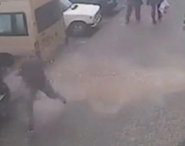 Yukarı baktı, hayatı kurtuldu.Belarus'ta kaldırımda yürüyen bir adam, gelen sesler üzerine yukarı bakıyor. Üzerine doğru beton parçası düştüğünü gören adam kaçarak kurtuluyor. O anlar anbean güvenlik kamerasına yansıyor.