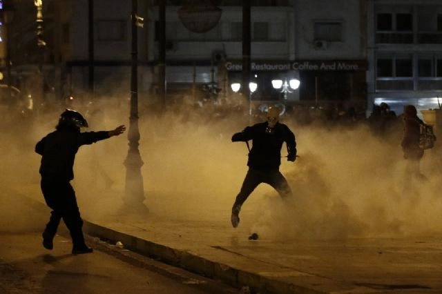 Hükümetin kemer sıkma politikalarını protesto eden binlerce gösterici Yunan Parlamentosu önünde toplandı. Polis ve göstericiler arasında çatışma çıktı. Yunanistan'da Hükümetin kemer sıkma politikalarına karşı protestolar devam ediyor. Yunan Parlamentosu önünde toplanan göstericiler, parlamento önünde bulunan polis kulübesine molotofkokteyli ile saldırdı. Göstericiler, göz yaşartıcı gaz ile müdahale eden polislere taş ve sopalarla karşılık verdi.Şu anda parlamentoda Alexis Tsipras hükümetinin IMF ve AB ile anlaşmış olduğu ekonomik önlem paketi görüşülmekte ve paketin gece geç saatlerde oylanması bekleniyor. Öte yandan 5 milyar Euroluk kesintileri öngören söz konusu paket, özellikle emeklilerin ve devlet memurlarının maaşlarının kesintiye uğramasına neden oluyor.(Manol Kostidis / İHA)