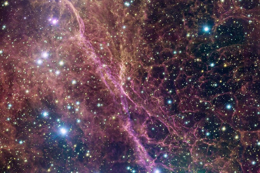 Ömrünün sonuna gelen bir yıldızın ardında bıraktığı bu renkli gaz iplikçikleri, yok oluşla yeniden doğuşun kozmik hikâyesini gözler önüne seriyor. Şok dalgaları, yıldızlararası gazı biçimlendirerek ışıldayan eşsiz desenler yaratıyor.