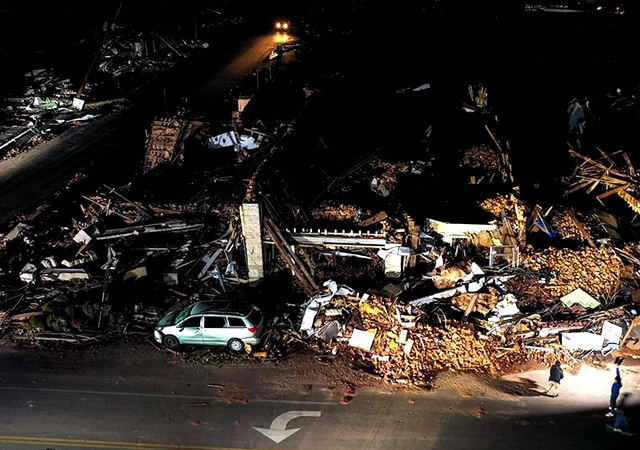 Öte yandan, acil durum ekiplerinin, Mayfield kentinde yerle bir olan mum fabrikasında arama kurtarma çalışmalarına devam ettiği bilgisi verildi.