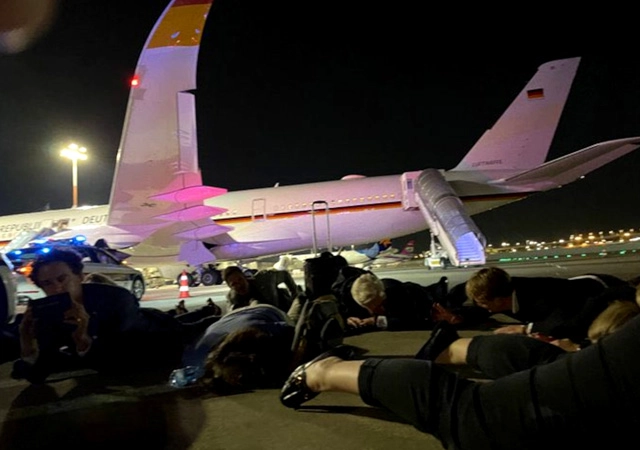 Uçağı boşaltan Almanya heyeti, sirenler susana kadar yere yatarak bekledi.