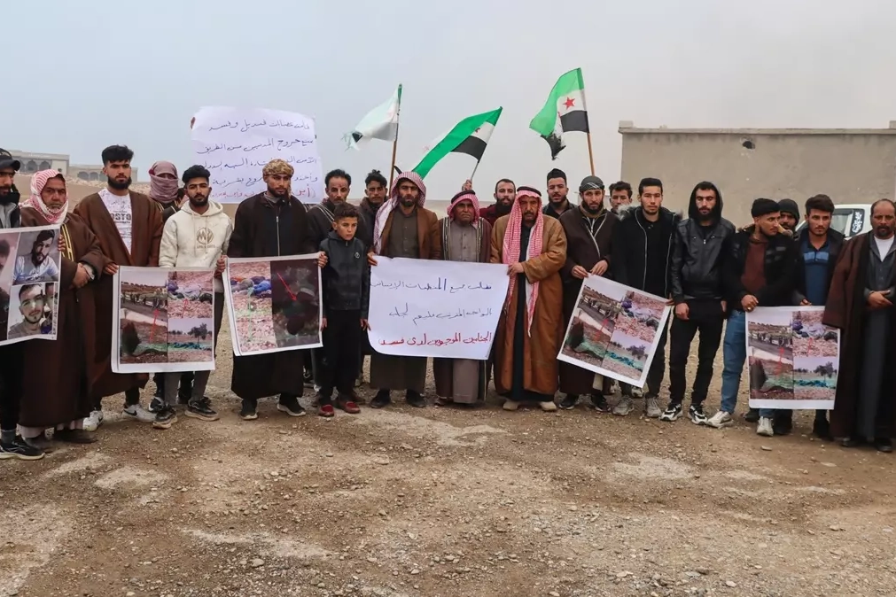Suriye'de YPG'nin öldürdüğü sivillerin aileleri, yakınlarının naaşlarının teslim edilmesi için gösteri düzenledi.