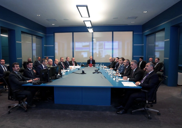Cumhurbaşkanı Erdoğan'ın başkanlığında Barış Pınarı Harekatı'nın Koordinasyon Toplantısı gerçekleştirildi. Cumhurbaşkanlığı Külliyesi'nde yapılan bu kritik toplantıda Erdoğan, Fırat'ın doğusunda başlatılan Barış Pınarı Harekatı'nın hareket merkezinden takibini yapıyor.