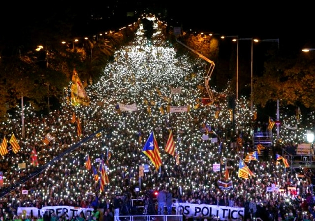 Barselona şehir polisine göre 750 bin kişinin katıldığı gösteride, Katalonya Parlamentosunun 27 Ekim tarihinde ilan ettiği tek taraflı bağımsızlık ilanı kararı sonrasında "devlete başkaldırma, ayaklama ve kamu malını kötüye kullanma" suçlarıyla açılan soruşturma kapsamında, tutuklanan eski 8 Katalonya yerel hükümet üyesi ile bağımsızlık yanlısı sivil toplum örgütlerinden iki yetkilinin serbest bırakılması talep edildi.
