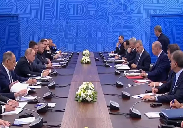 Cumhurbaşkanı Erdoğan, BRICS Zirvesi kapsamında Rusya Devlet Başkanı Putin ile bir araya geldi. Rusya Devlet Başkanı Putin görüşme öncesi açıklamalarda bulundu.