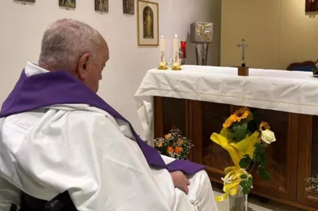 Bir aydır hastanedeydi: Papa'nın son hali ortaya çıktı! Vatikan, 14 Şubat'tan bu yana hastanede tedavi altında olan Katoliklerin ruhani lideri Papa Francis'in ilk kez hastaneden fotoğrafını yayınladı. Fotoğrafta, Papa'nın tedavi gördüğü hastanenin şapelinde olduğu görüldü. Katoliklerin ruhani lideri 88 yaşındaki Papa Francis'in 14 Şubat'tan bu yana İtalya'nın başkenti Roma'daki Gemelli Hastanesi'nde tedavisi devam ediyor.