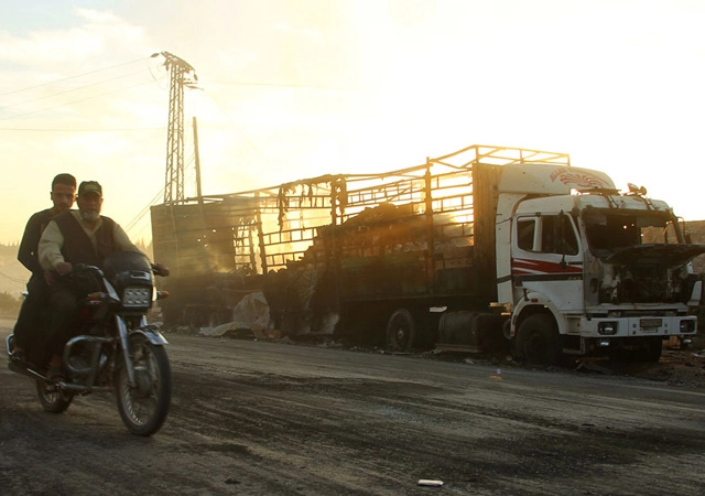 Konvoyun 18 Eylül'de bir hava saldırısına uğraması nedeniyle ABD ile Rusya arasında karşılıklı suçlamalar yaşanmıştı ve ülkedeki ateşkes sona ermişti. Esed rejimi, BM konvoyuna saldıran tarafın kendisi olmadığını iddia etmişti.