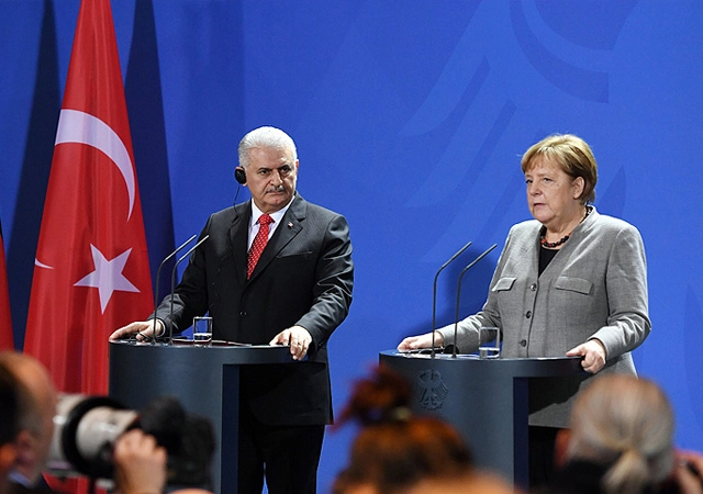 Almanya'ya çalışma ziyaretinde bulunan Yıldırım, Başbakanlık binasında Alman mevkidaşı Merkel tarafından karşılandı.