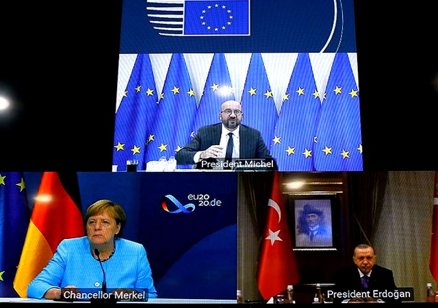 Cumhurbaşkanı Recep Tayyip Erdoğan, Avrupa Birliği (AB) Konseyi Başkanı Charles Michel ve Almanya Başbakanı Angela Merkel ile üçlü formatta bir video konferans görüşmesi gerçekleştirdi.