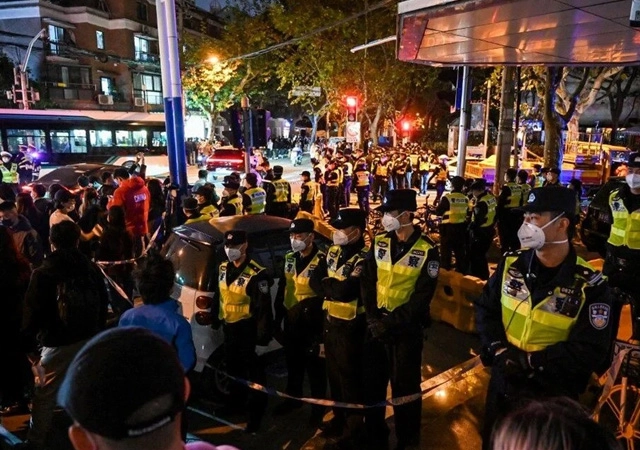 Ülkenin en büyük şehri Şanghay'da dün gece, yangında hayatını kaybedenleri anmak ve karantina politikasını protesto etmek için Anfu semtinde Orta Urumçi Caddesi'nde toplanan kalabalığa polis müdahale etti, bazı göstericiler gözaltına alındı.