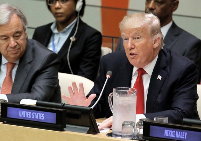 ABD Başkanı Donald Trump, ABD tarafından BM'de düzenlenen "BM Reformu" başlıklı toplantıda yaptığı konuşmada, kuruluşun yönetim ve bütçe konularında reform yapması gerektiğini söyledi.Donald Trump konuşmasına, BM'nin hemen yanındaki "Trump Tower'ı" ima ederek "Caddenin karşısından bakınca büyük potansiyel görüyorum." diyerek başladı.Temsil edilen kişilere daha iyi hizmet verilmesi gerektiğini de vurgulayan Trump, BM'nin kalkınma, yönetim, barış ve güvenlik konularında daha iyi işler ortaya koyabileceğini ifade etti.BM'nin muhtaçlara yardım ve barışı koruma gibi çok saygın vazifeleri olduğunu kaydeden Trump, "Birleşmiş Milletler, bürokrasi ve kötü yönetim nedeniyle potansiyelini ortaya koyamadı. 2000 yılından bu yana BM'nin normal bütçesi yüzde 140, personel sayısı da ise iki katından fazla artmasına rağmen bu yatırımla orantılı neticeler göremiyoruz." dedi."BM BÜTÜN YÖNETİM BİRİMLERİNİ HESAP VEREBİLİR HALE GETİRMELİ"BM'nin bürokrasi yerine insanlara odaklanması gerektiğini belirten Trump, "BM'nin dünyadaki insanların tekrar güvenini kazanmasını istiyoruz. Bunun için BM bütün yönetim birimlerini hesap verebilir hale getirmeli, süreç yerine sonuçlara odaklanmalı." diye konuştu.Trump, BM bütçesine yapılan katkıların da orantılı olması gerektiğini kaydederek "BM'de hiçbir üye ülke tek başına orantısız külfet omuzlamamalı. Bu finansal olarak da askeri olarak da orantısız olmamalı." ifadelerini kullandı.ABD Başkanı Trump, BM Genel Sekreteri Antonio Guterres'in de bürokrasinin azaltılması, sistemin yenilenmesi ve BM'nin ana misyonunu daha iyi yapması için kararlı adımlar atması gerektiğini söyledi.
