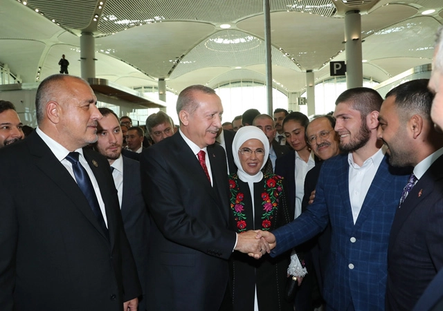 Rusya Devlet Başkanı Vladimir Putin'in de ağırladığı Khabib'e Cumhurbaşkanı Erdoğan'dan İstanbul Yeni Havalimanı açılışına katılması için davet gitmişti.