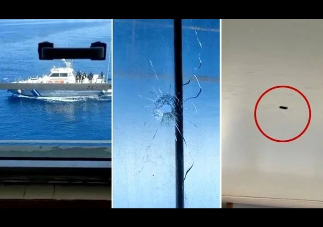 Öte yandan Sahil Güvenlik Komutanlığı olay anına ilişkin görüntüleri de paylaştı. Görüntülerde Yunan Sahil Güvenlik birimlerinin ateş açması ve Ro-Ro gemisindeki isabetler yer alıyor.