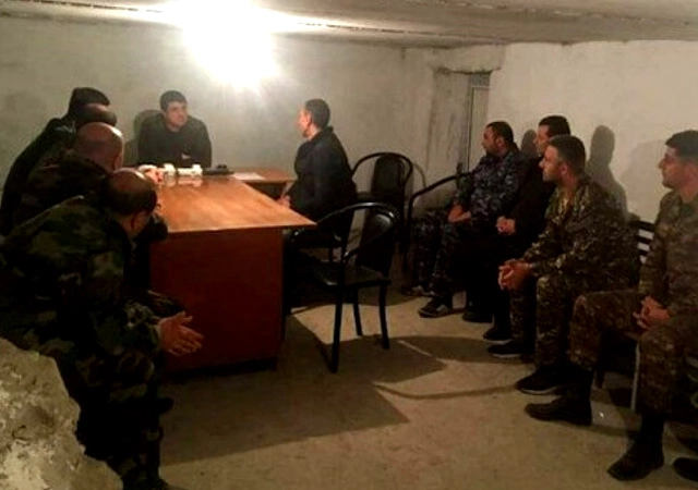 Sosyal medyada paylaşılan bir fotoğrafta, Harutyan'ın sığınakta toplantı halinde olduğu görüldü.