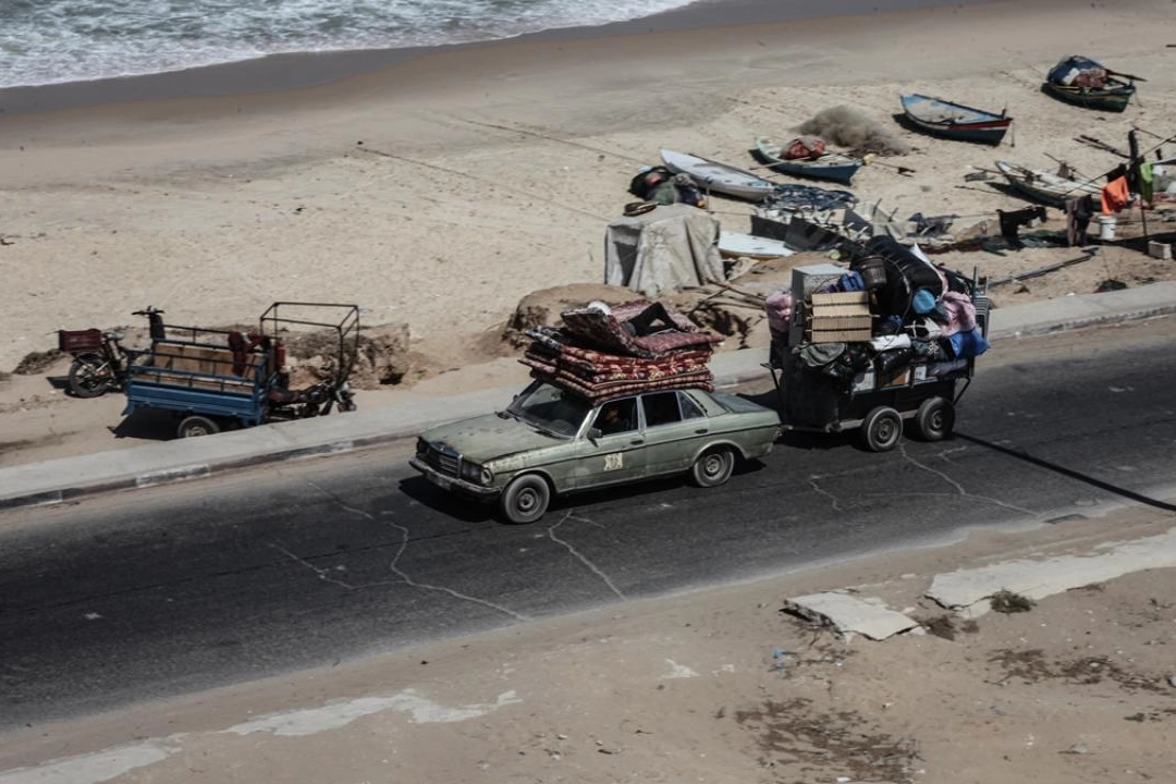 Gazze sahilindeki Reşid Caddesi üzerinden güneye doğru geniş çaplı göç hareketi yaşanıyor.