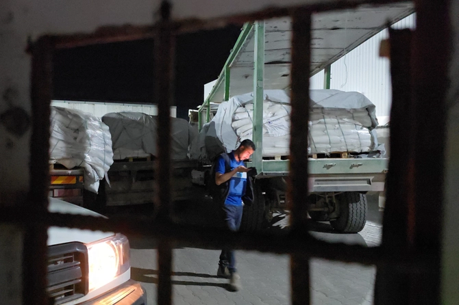 Şuhaybir, "Tırlardan 75'i güney ve orta kesimlerdeki fırınlara un taşıdı. Yardımlar Kerem Ebu Salim Sınır Kapısı üzerinden ulaştırıldı." diye konuştu.