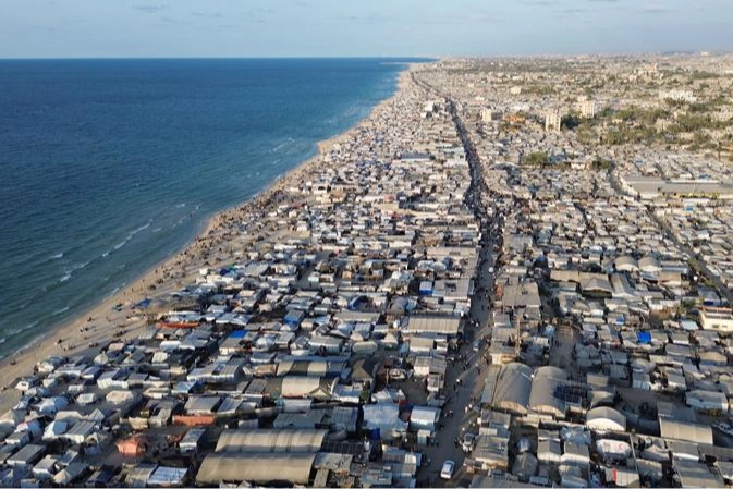 İsrail'in Gazze'nin Şeyh Rıdvan Mahallesi'nde bıraktığı ağır yıkım, havadan görüntülendi. Konutların yerle bir olduğu mahallenin ortasındaki çadır dikkat çekti.