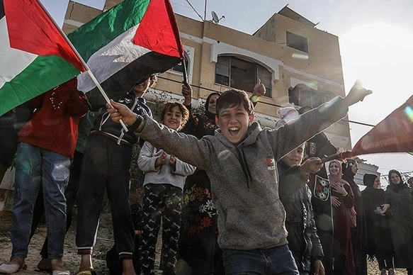 Gazzeliler, İsrail'in 471 gün sonra sağlanan ateşkesle büyük sevinç ve coşku yaşadı. Gazzeli gençler, Filistin bayraklarıyla konvoy oluşturur- ken, hep birlikte "Burada kalacağız" marşları söyledi. Kassam Tugayı birlikleri de ellerinde silahlarla zafer kutlamalarına katıldı.