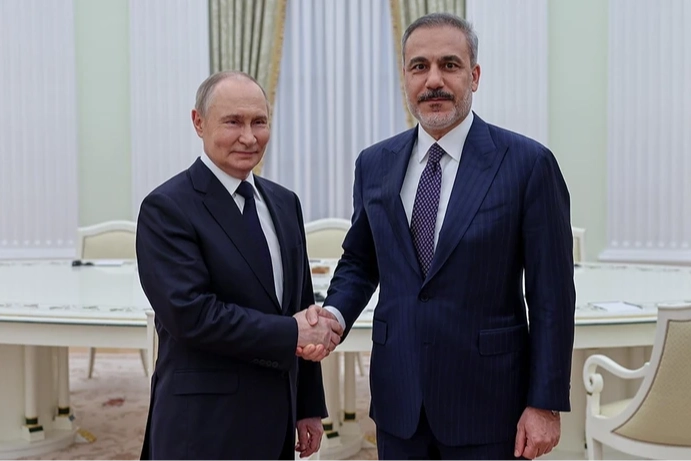 Dışişleri Bakanı Hakan Fidan, resmi temaslarda bulunmak üzere gittiği Rusya’da Devlet Başkanı Vladimir Putin ile bir araya geldi. Yaklaşık bir saat süren görüşme, yerel saatle 19.30'da başladı ve 20.30'da sona erdi.