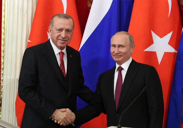 Rusya Devlet Başkanı Vladimir Putin ile Cumhurbaşkanı Recep Tayyip Erdoğan baş başa görüşmeden önce basın açıklaması yaptılar.