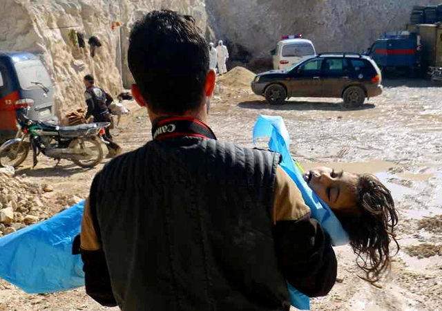 Muhalif gruplara yakın Londra merkezli Suriye İnsan Hakları Gözlemevi, saldırıda sarin gazının kullanıldığını ve saldırıyı Suriye ordusu ya da Rus hava kuvvetlerinin düzenlediğini belirtiyordu.