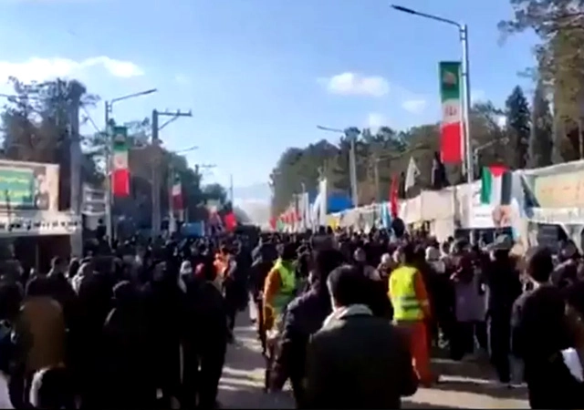 Kirman'da, Süleymani'nin kabrinin de bulunduğu mezarlığa giden yolda gerçekleşen patlamanın kapsamı ya da sebebine ilişkin detay verilmezken yayınlanan görüntülerde anma etkinliğine katılanların kaçıştığı ve ambulansların olay yerine gittiği görülüyor.