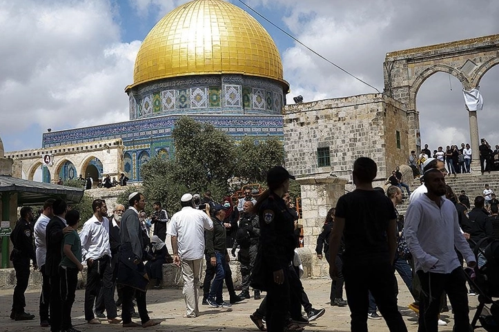 Gruplar halinde Aksa'nın avlusunda provokatif şekilde tur atan fanatik İsrailliler, burada "Talmudik" ayinler gerçekleştirdi.