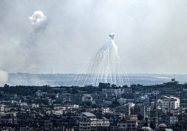 Filistin Dışişleri Bakanlığının X sosyal medya platformundan yapılan açıklamada, "İşgalci İsrail, Filistinlilere karşı uluslararası yasaklı olan beyaz fosforu kullanıyor." denildi.