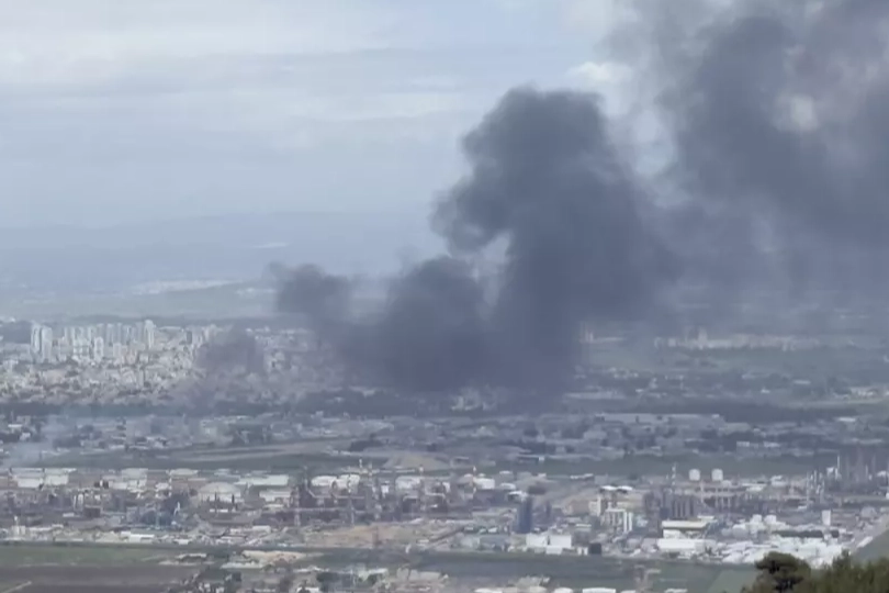 İRAN VE HİZBULLAH'IN EŞ ZAMANLI MİSİLLEMESİ SONRASI HAYFA'DAKİ PETROL RAFİNERİSİNDEN DUMANLAR YÜKSELİYOR