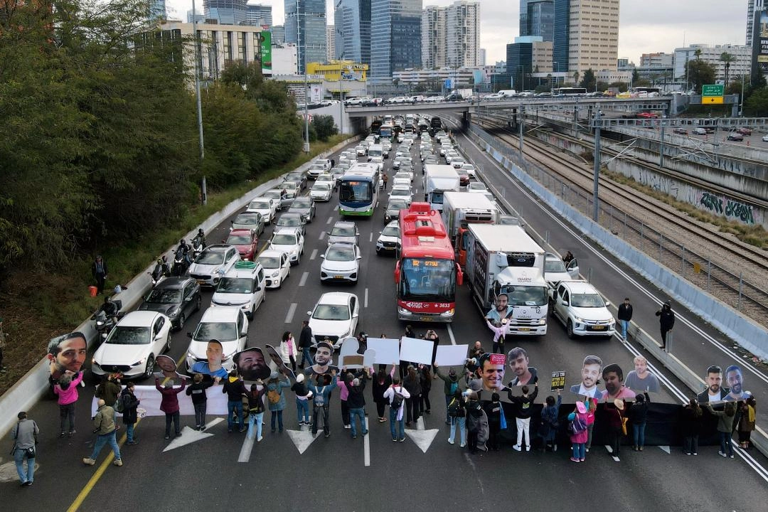Tel Aviv'deki Ayalon Otoyolu'nun güney yönünü trafiğe kapatan İsrailliler, Başbakan Binyamin Netanyahu hükümetine seslendi.