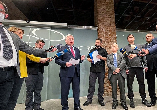 Görüşmenin ardından Ukrayna heyeti kameraların karşısına geçti.