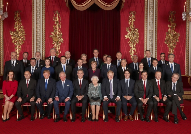 Cumhurbaşkanı Erdoğan, İngiltere Kraliçesi 2. Elizabeth tarafından NATO'nun 70. yılı dolayısıyla heyetler onuruna verdiği resepsiyonda bulundu. Resepsiyona katılan liderler aile fotoğrafı çektirdi.