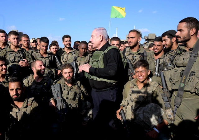 İsrail Başbakanı Binyamin Netanyahu, Gazze sınırı yakınlarında bulunan askerlerle bir araya geldi.