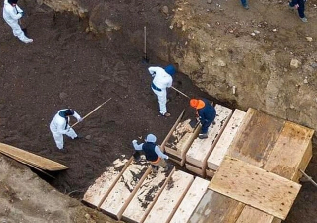 Toprağa verilenlerin kimliğiyle ilgili bir açıklama yapılmadı, fakat koronavirüsten öldükleri düşünülüyor.