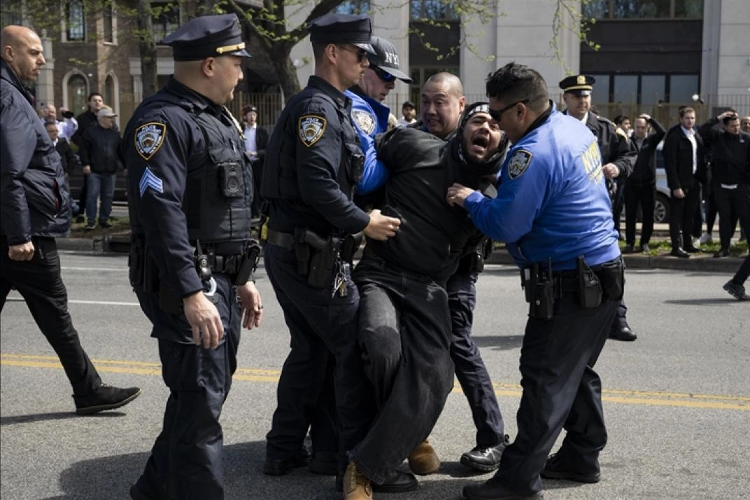 Brooklyn bölgesinde Filistin'e destek amaçlı gösteri yapan bir grup, İsrail'in aşırı sağcı Ulusal Güvenlik Bakanı Itamar Ben-Gvir'in konuşma yapacağı belirtilen bir sinagogun önünde toplandı.