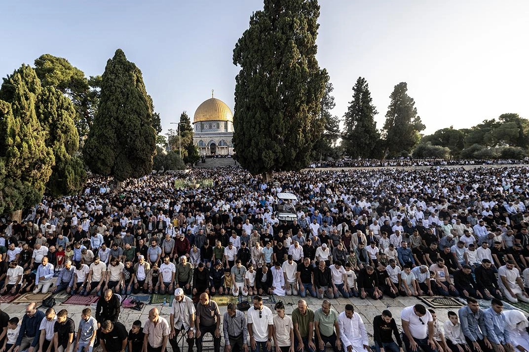 Kudüs İslami Vakıflar İdaresi'nden yapılan açıklamaya göre, Müslümanların ilk kıblesi Mescid-i Aksa'da 80 bin kişi bayram namazı kıldı.