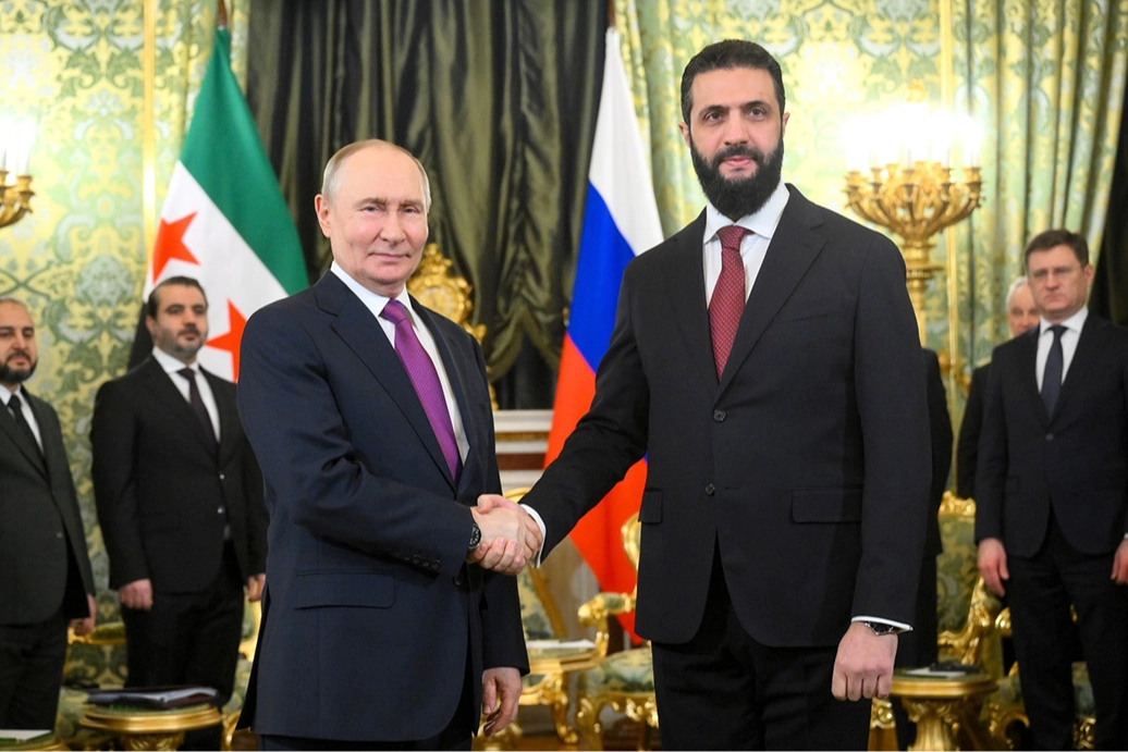Kremlin Sarayı'ndan gelen açıklamaya göre, Putin, Rusya'yı ziyaret eden Şara ile başkent Moskova'da buluştu. Görüşmenin başında söz alan Putin, Sovyetler Birliği ve Suriye arasındaki diplomatik ilişkilerin 1944'te kurulduğunu hatırlatarak, "Suriye ile ilişkilerimiz köklü ve derindir. Yeni gerçekler ışığında Suriye ile Rusya arasındaki ilişkiler, sizin çabalarınız sayesinde gelişiyor." şeklinde konuştu.