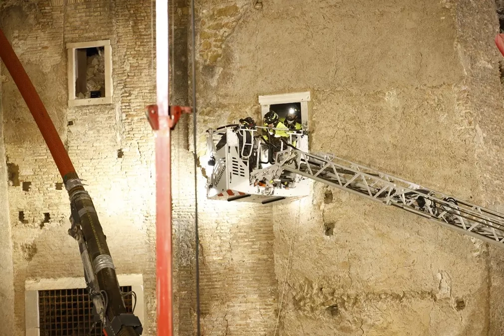 Başkentin merkezindeki Fori Imperiali Bulvarı'na bakan ve 13. yüzyılda inşa edilen "Torre dei Conti" kulesinde restorasyon çalışmaları devam ederken, bir kısımda yaşanan çökme hadiseleri uzun süren bir kurtarma operasyonuna sahne oldu.