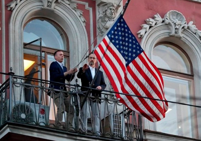 İngiltere'de zehirlenen çifte ajan Skripal ve kızının neden olduğu krizin ardından beklenen adım atıldı ve ABD'nin St. Petersburg Başkonsolosluğu binasındaki Amerikan bayrağı söküldü.