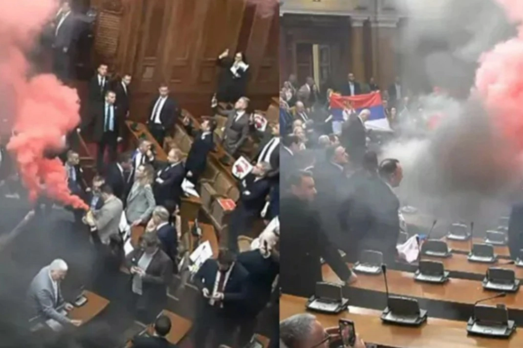 Sırbistan'da aylardır süren hükümet karşıtı protestolar, meclis salonuna taşındı. Muhalefet milletvekilleri, bahar yasama döneminin ilk oturumunda sis bombaları ve havai fişekler kullanarak protesto düzenledi. Parlamento kısa sürede duman altında kaldı ve olaylar şiddet içerikli çatışmalara dönüştü.