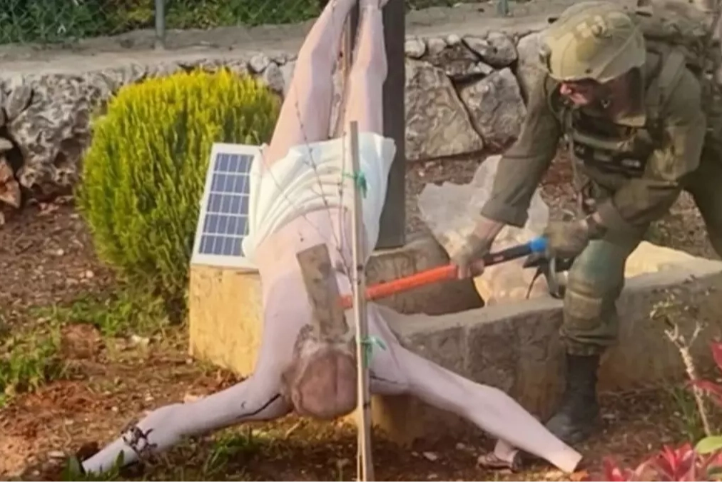 Lübnan'ın güneyinde sınıra 5-6 kilometre uzaklıktaki Deyr Seryan beldesinde, bir İsrail askerinin İsa heykelini baltayla kırdığını gösteren bir fotoğraf sosyal medyada paylaşıldı. Olayın ne zaman gerçekleştiğine ilişkin bir bilgi paylaşılmazken, söz konusu fotoğraf büyük tepki çekti.