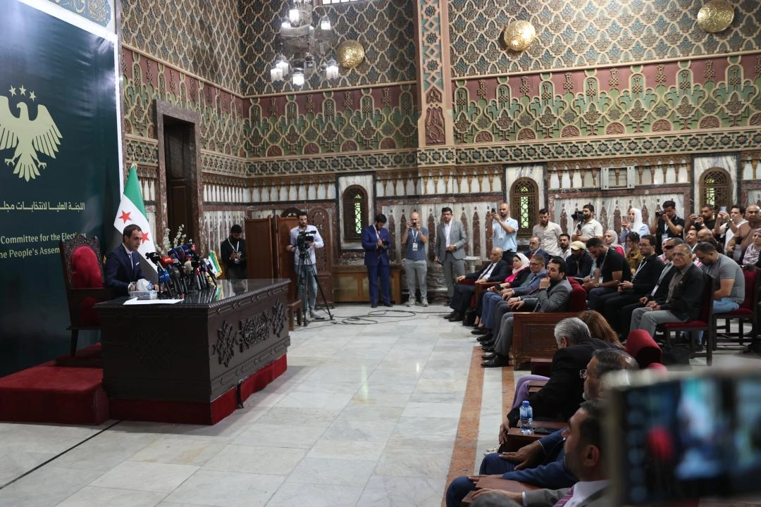 Yüksek Seçim Komitesi Sözcüsü Nevvar Necme, başkent Şam'daki Halk Meclisi binasında düzenlenen basın toplantısında seçim sonuçlarını kamuoyuyla paylaştı.
