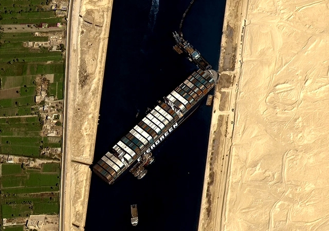 Dünyanın en önemli su yollarından Süveyş Kanalı'nda dev konteyner gemisi, ülkede yaşanan kum fırtınası ve kötü hava koşulları neticesinde görüş mesafesinin düşmesi nedeniyle kıyıya çarparak kaza yapmıştı.