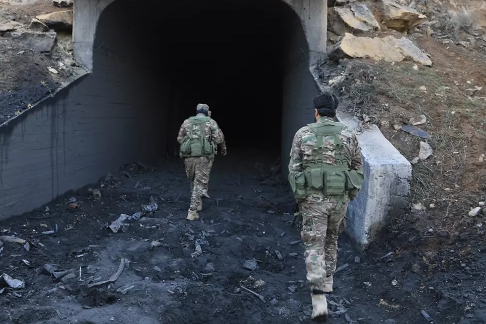 Fırat Nehri'nin doğusunda yer alan Sırrin'de Suriye ordusu, terör örgütü YPG'den arındırılan tünellerde arama tarama çalışmalarını sürdürüyor.