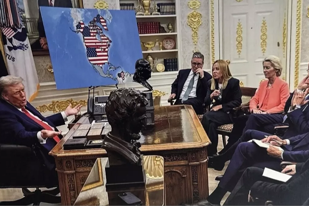 ABD Başkanı Donald Trump, sosyal medya hesabından paylaştığı görselde, Danimarka'ya bağlı özerk bölge Grönland topraklarının "2026'da kurulan ABD toprağı" olarak tasvir eden bir görsel paylaştı.